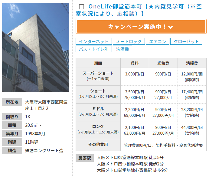 ⇒ 阿波座駅周辺のマンスリーマンションを探す(スマホ用ページ)